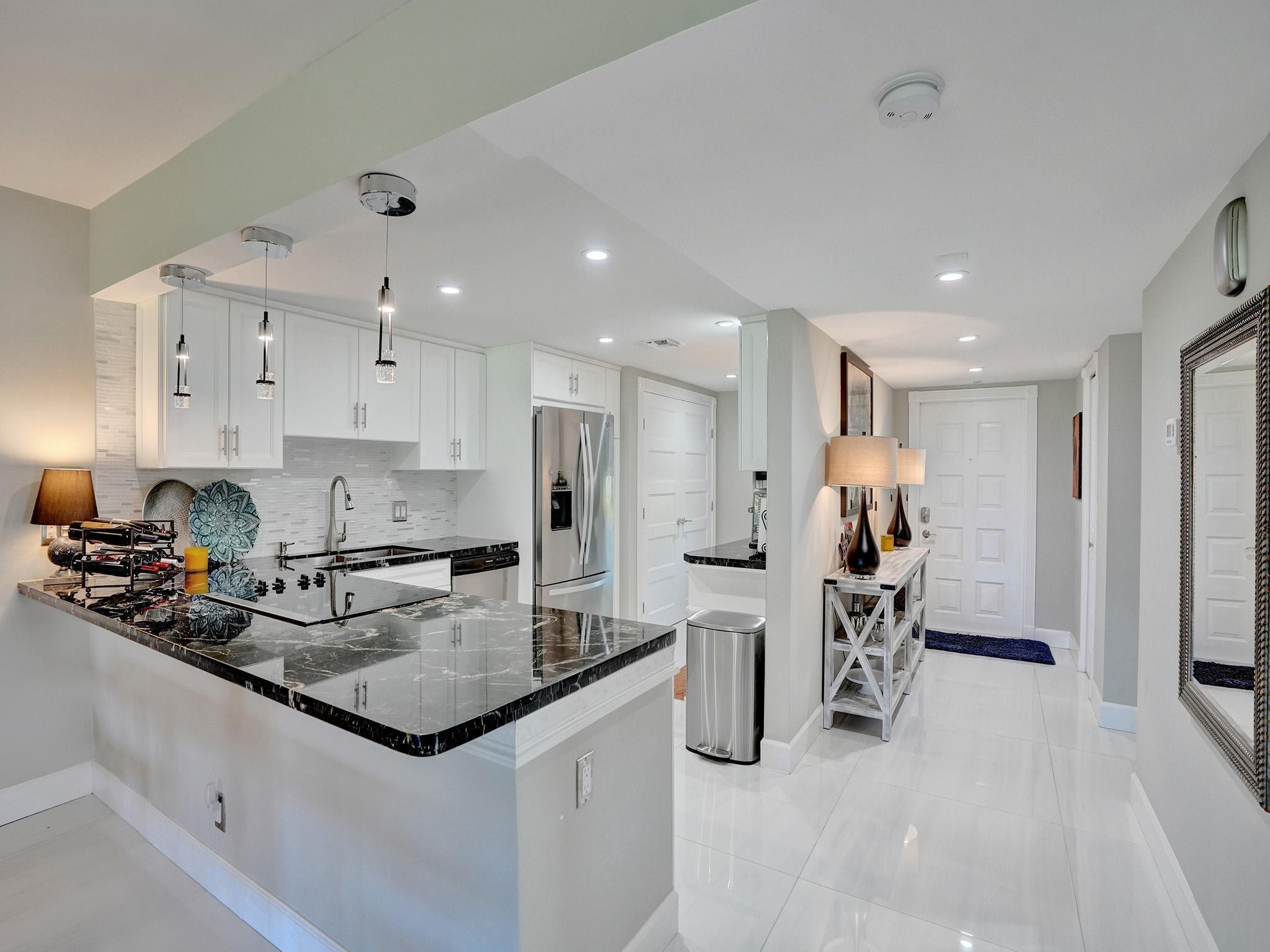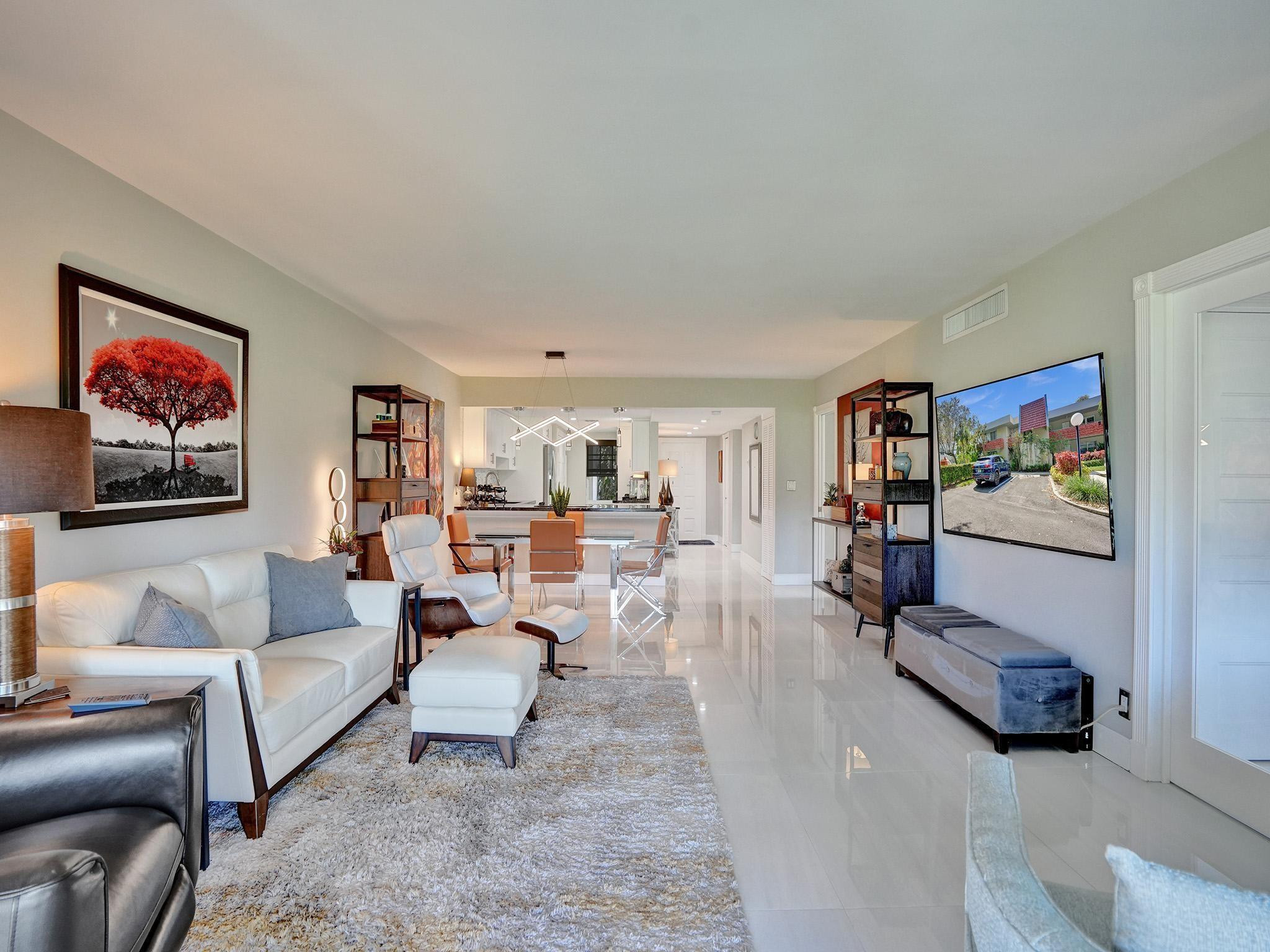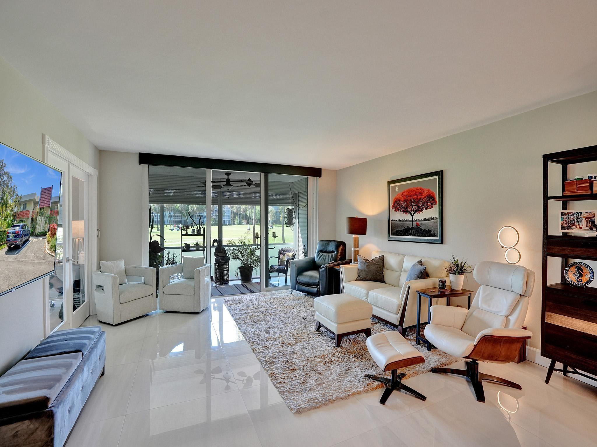 This One is Special! Fully Renovated 3-bed, 2-bath corner unit, perfectly situated along the 13th hole of a prestigious golf course. Every aspect has been expertly redesigned top to bottom. From custom closets to remote-controlled blinds, a modern chef's kitchen, & high-end finishes throughout. High-impact windows/doors, elegant porcelain tiles, updated plumbing, & electrical. Amenities include access to 3 pools, basketball/pickleball/tennis courts. Monthly fees include cable, internet, water, sewer, & trash. Just mins away from "The Pomp," South Florida's premier development, promising a world-class destination. 40 year inspection completed, no pending assessments, building in excellent condition. Come experience this turn-key home for yourself!