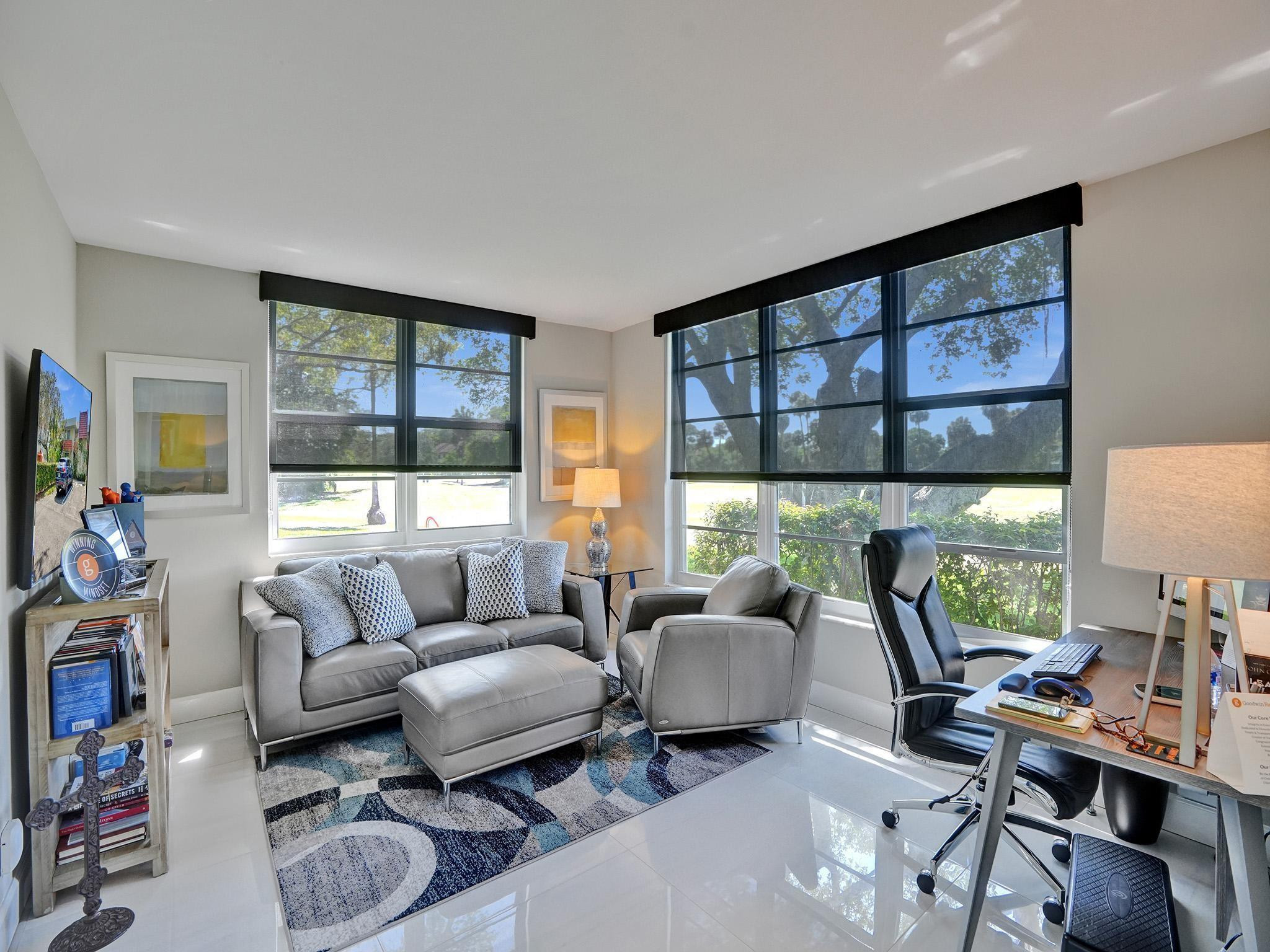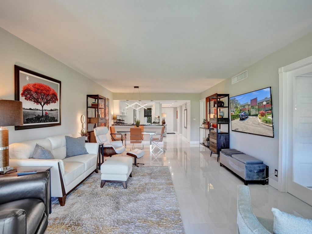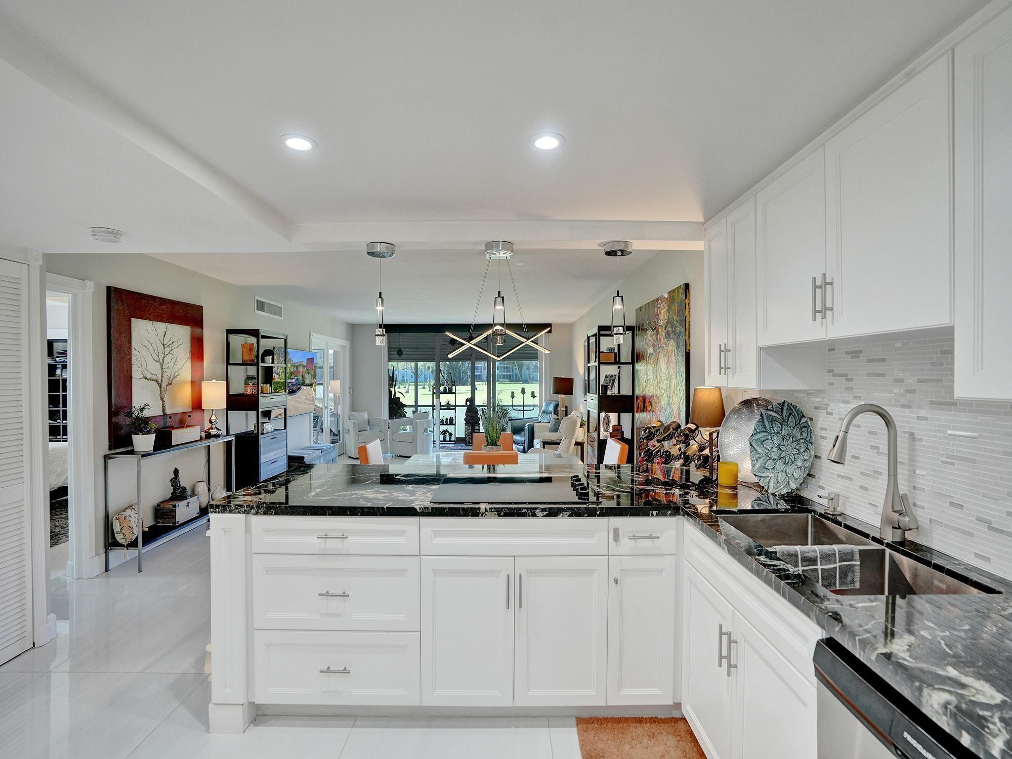 This One is Special! Fully Renovated 3-bed, 2-bath corner unit, perfectly situated along the 13th hole of a prestigious golf course. Every aspect has been expertly redesigned top to bottom. From custom closets to remote-controlled blinds, a modern chef's kitchen, & high-end finishes throughout. High-impact windows/doors, elegant porcelain tiles, updated plumbing, & electrical. Amenities include access to 3 pools, basketball/pickleball/tennis courts. Monthly fees include cable, internet, water, sewer, & trash. Just mins away from "The Pomp," South Florida's premier development, promising a world-class destination. 40 year inspection completed, no pending assessments, building in excellent condition. Come experience this turn-key home for yourself!